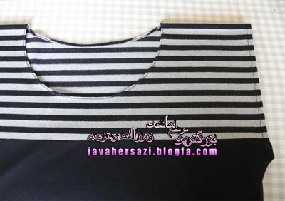 برای اندازه دقیق پهلوها میتونید از یک لباس کشی و یا تونیک هم اندازه خودتان استفاده نمایید و یا گردی یقه را از سر بگذرانید و اندازه پهلوها را روی بدن خودتان اندازه گرفته و با سنجاق قفلی علامت بزنید و سپس لباس را بیرون آورده و زیر چرخ بدوزید.
