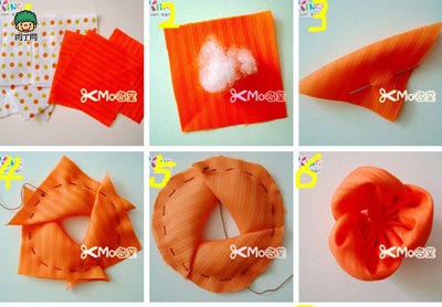 برای مرکز گل تیز پاچه ای دایره برش بزنید و اطراف آن را کوک بزنید سپس آن را پر از پنبه نمایید و نخ را بکشید.