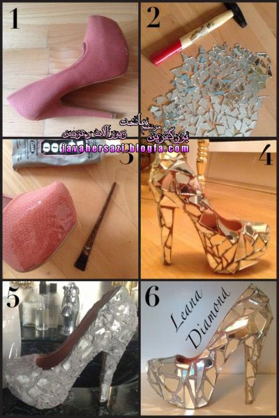 تکه سی دی ها را به صورت منظم روی کفش بچسبانید